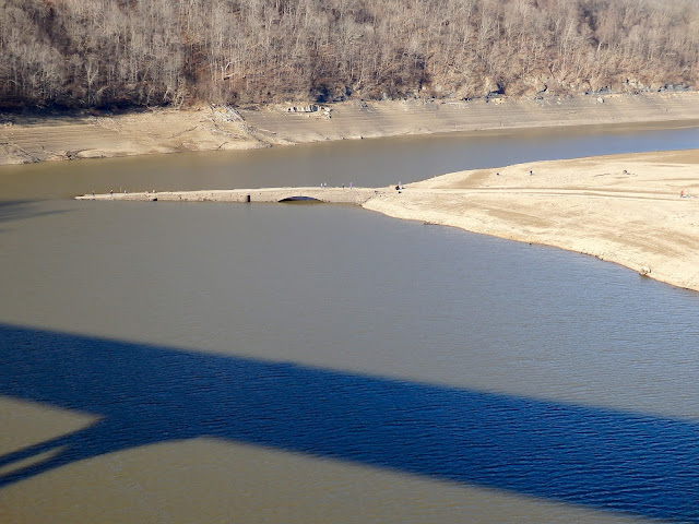 ReplyDeleteI WAS JUST THERE A FEW DAYS AGO AND WAS ABLE TO WALK REALLY FAR OUT ONTO LAND..TO THE EDGE OF THE OLD BRIDGE..STILL A TREE STUMP THERE AND BRICKS AND CONCRETE FROM THE ROAD/ SIDEWALKS...GREAT PICS...